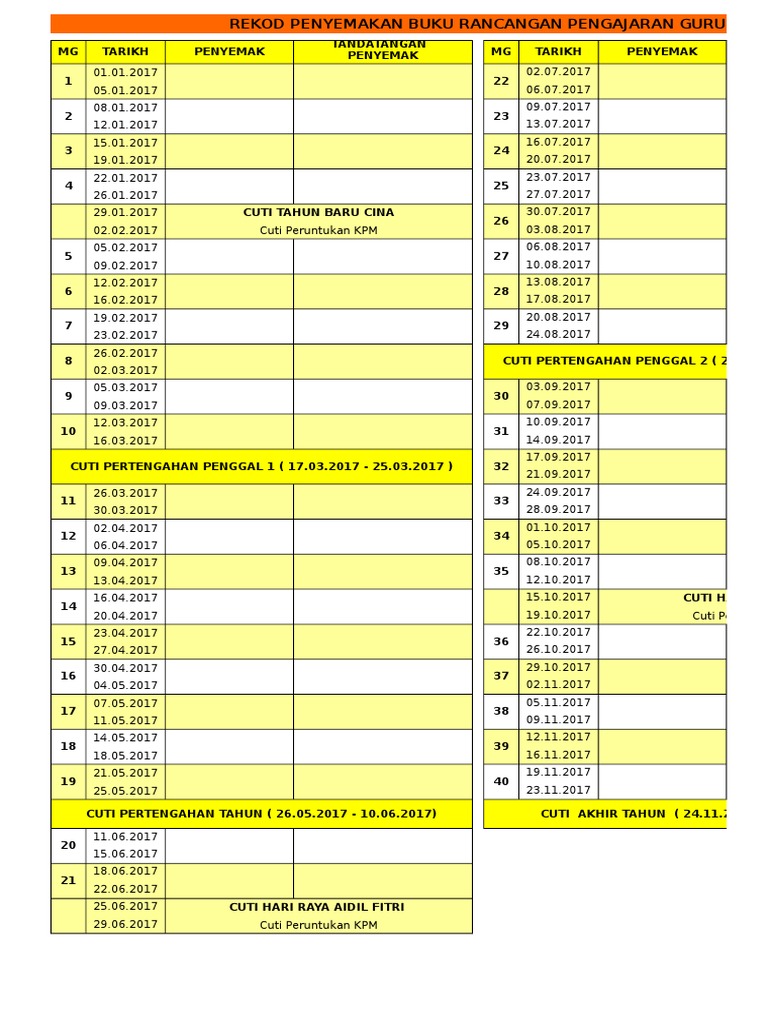 Jadual Semakan Buku Rekod Mengajar 2017 Pdf